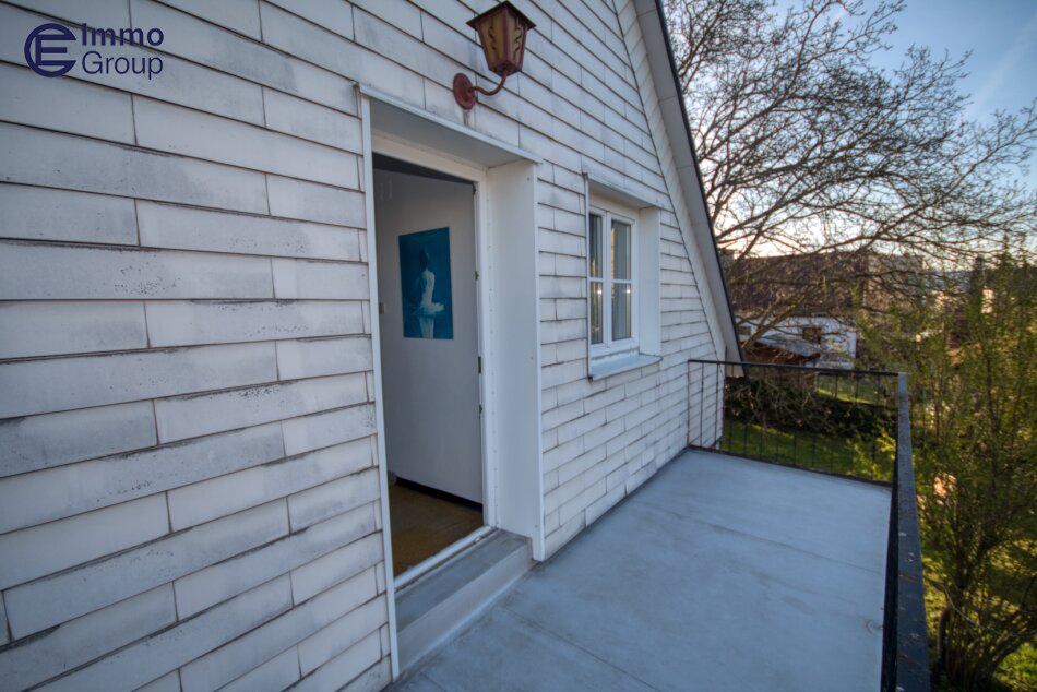 Über die Stiegen erreichen Sie das Dachgeschoss. Hier befinden sich drei weitere Zimmer mit einer Gesamtfläche von ca. 44,43 m² sowie einem ca. 7,65 m² großem Balkon. Morgendlicher Kaffee/Tee am Balkon - kein Problem.