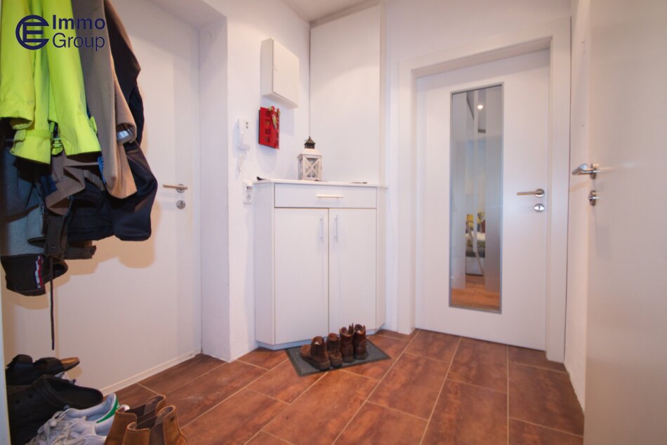Über den Vorraum gelangen Sie in das Wohnzimmer, Schlafzimmer und Badezimmer.