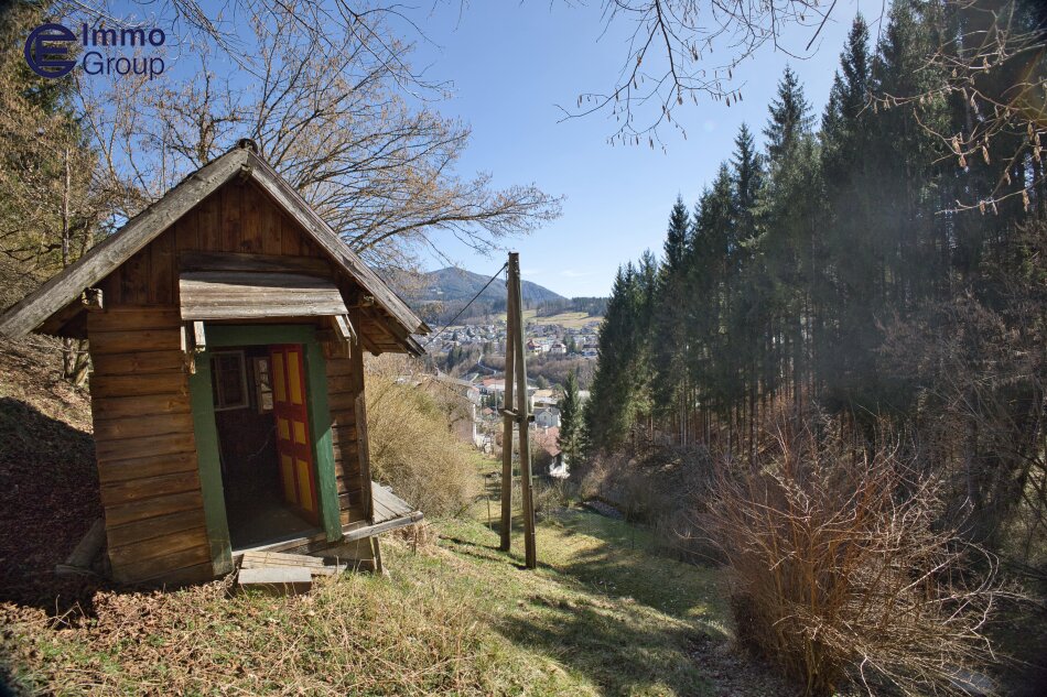 Die Liegenschaft ist über einen längeren, teils steileren Weg entlang eines Wald- und Straßenabschnitts erreichbar.